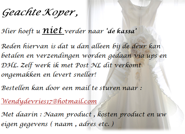 Voor bestellingen kunt u een mail sturen naar het onderstaande adres. U krijgt mail terug als het product op voorraad is of niet, en hoelang dit dan zou duren.